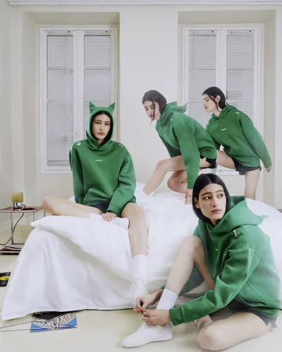 Extending the themes and concepts of the inaugural offerings, the second installment is highlighted by the elegant Asymmetrical Gown and Top, both crafted from CARVICO eco-sustainable techno-fabric, a mainstay of PUMA’s Olympic performance wear. The T7 Jacket and T7 Pants incorporate Coperni’s signature knot design. Adorned with a set of coy cat ears, the collection’s Hoodie presents a unique twist on Coperni’s horned sweatshirt, while a co-branded essential T-shirt completes the collection.