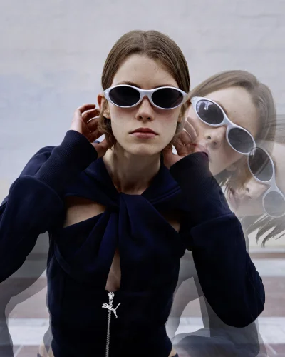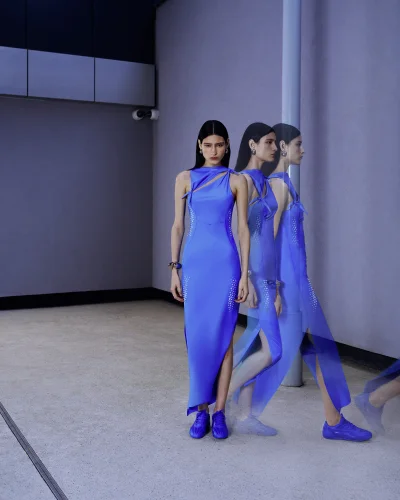 Evoking themes of time and movement, the campaign visually represents stillness and motion, as two protagonists cross paths, as a metaphor for the collaborative ideas shared between PUMA and Coperni.