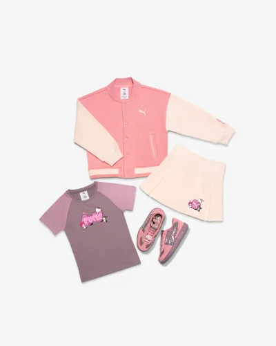 For apparel, pastel tones unite the collection, with PUMA x Hello Kitty and Friends graphics and sticker album-inspired patterns that jump off of each design. The Slim Tee comes with a specially created graphic on the chest, going along with the collection’s Pleated Skirt. A Bomber Jacket adds a preppy touch to the playful collaboration, while the Relaxed Crewneck is splashed with a bold print from neck to waist.